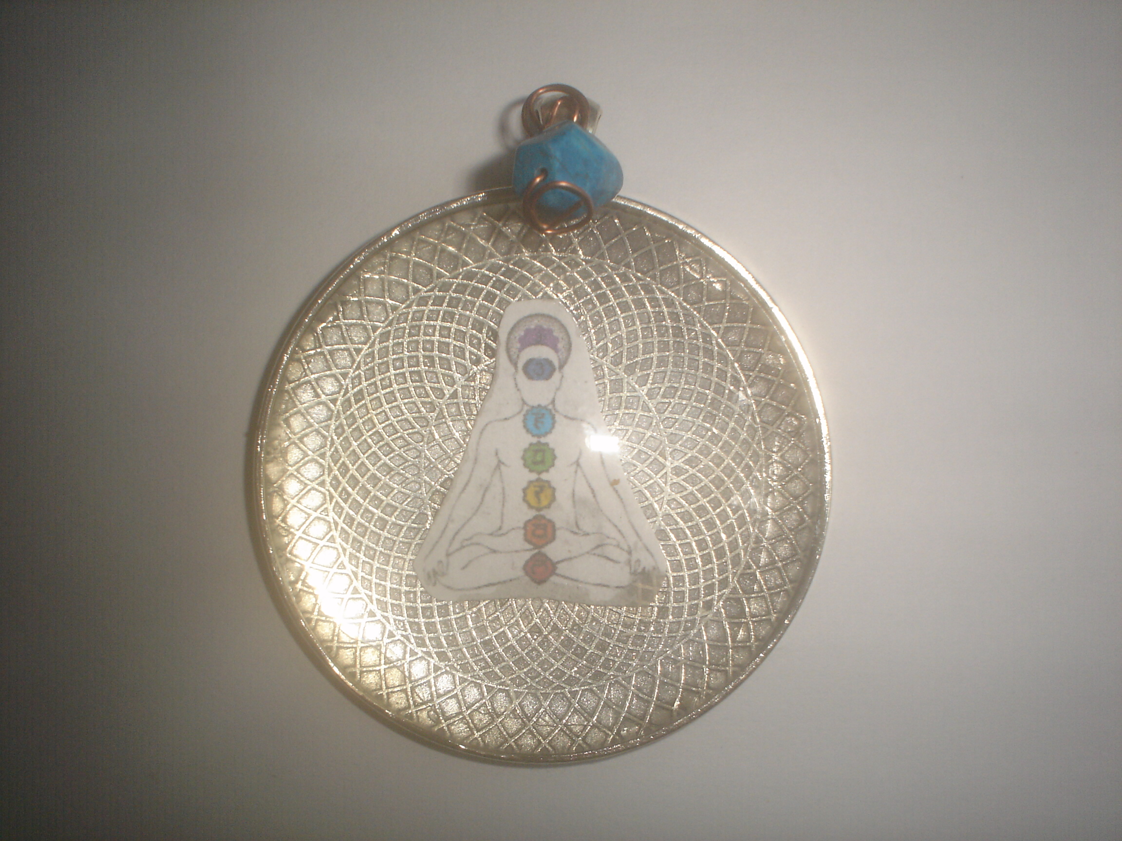 7 chakra orgonite pendant – mounted on the sacred geometry symbol – flower of life