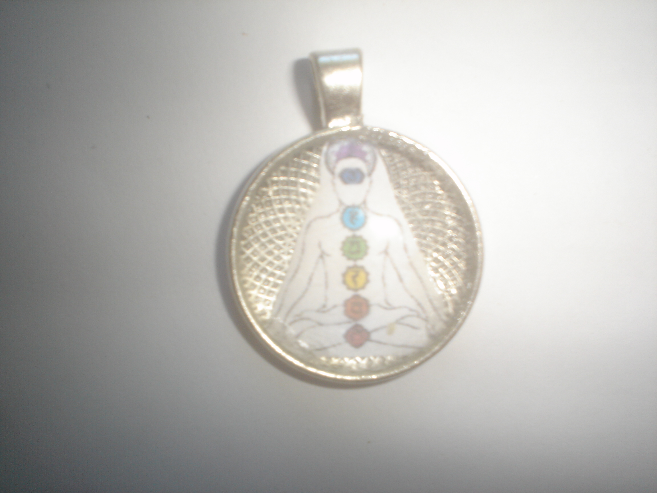 7 Chakras Dome Pendant – Behind the chakra picture is a flower of life engraved
