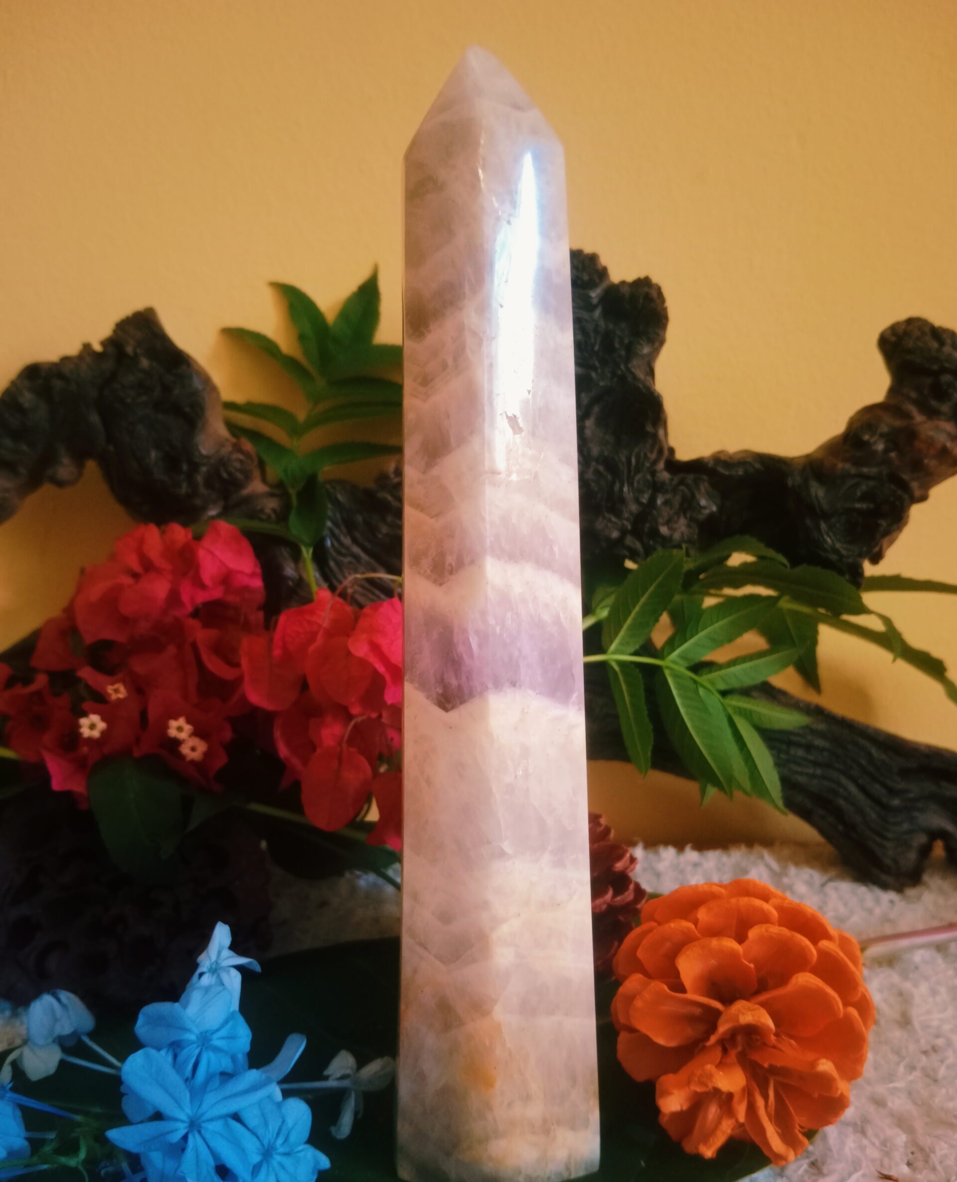 Amethyst point boosts hormone production. Also tune the endocrine system and metabolism. Next it strengthen the immune system, reduce pain and help the body to fight cancer. Destroy malignant tumors and aids in tissue regeneration. Cleanse the blood. As a result relieve physical, emotional and psychological pain or stress. Likewise ease headache and also tension. Nevertheless reduce bruising, swelling, also injuries, and treat hearing disorders. Heal diseases of the lungs and respiratory tract. Also skin conditions, cellular disorders and diseases of the digestive tract.