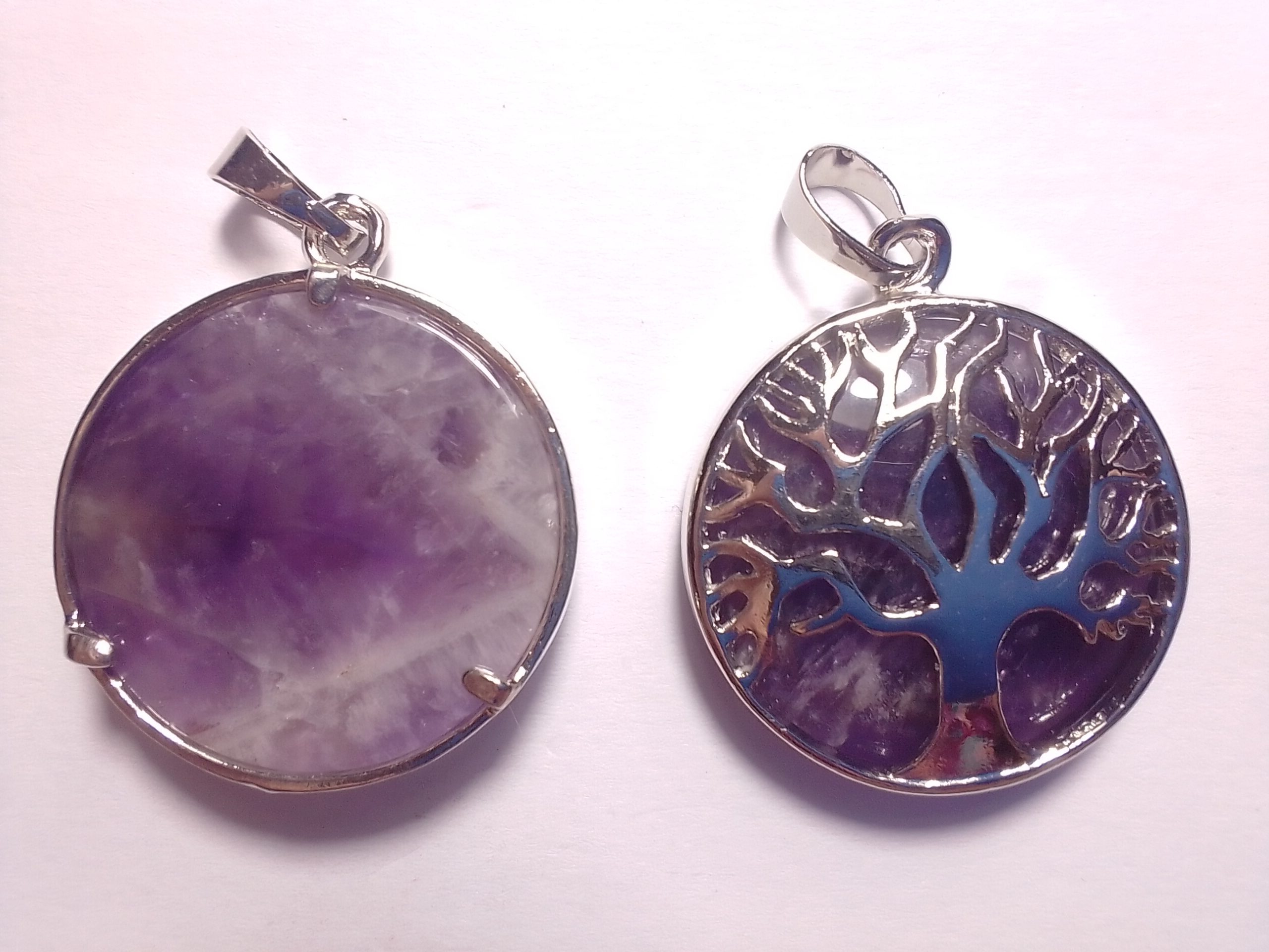 Amethyst Plated Orgonite Gemtree Pendant – Front and back of pendant on photo