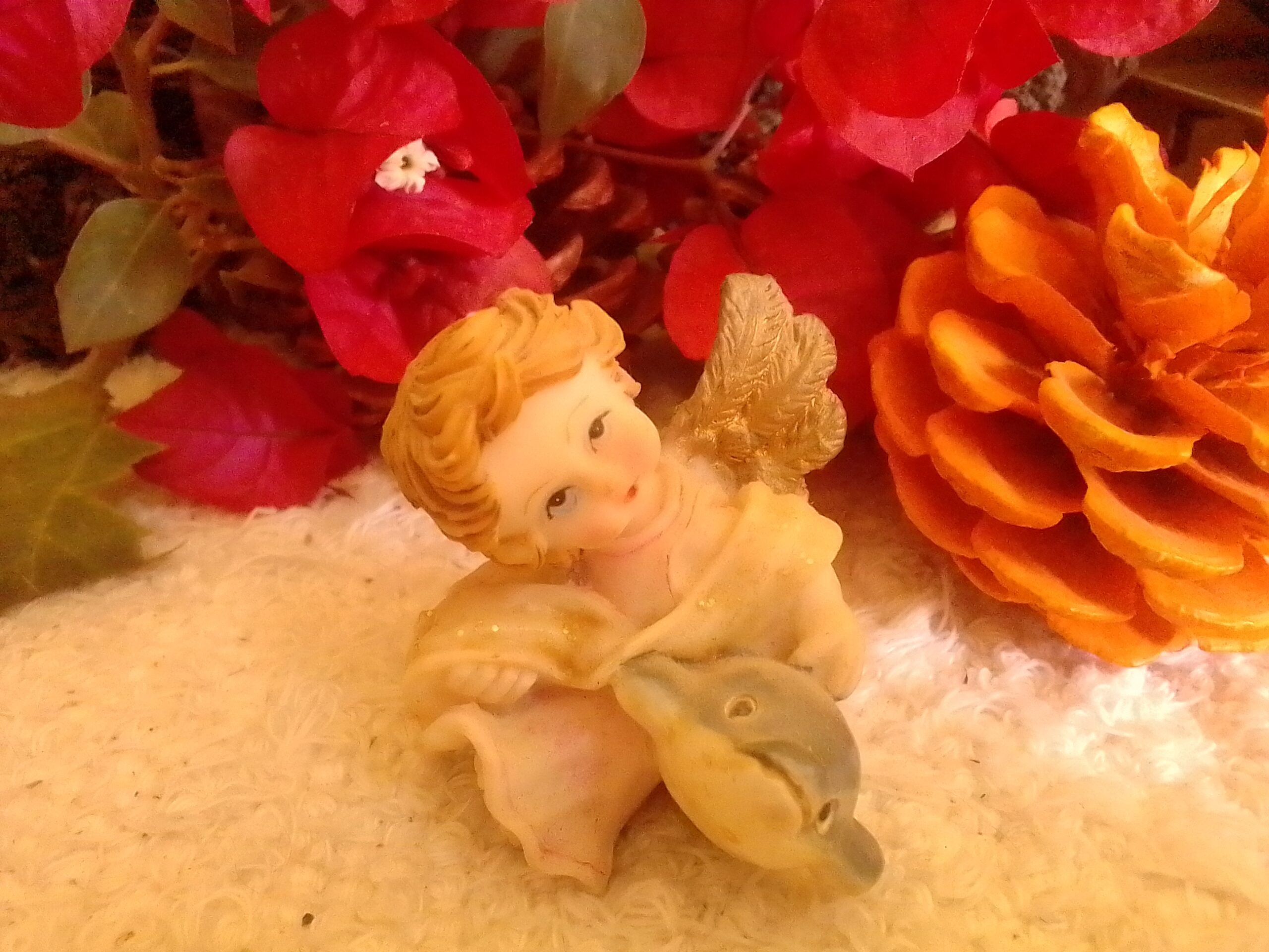Small Angel and Dolphin Figurine – Spiritual Symbol of Protection & Peace