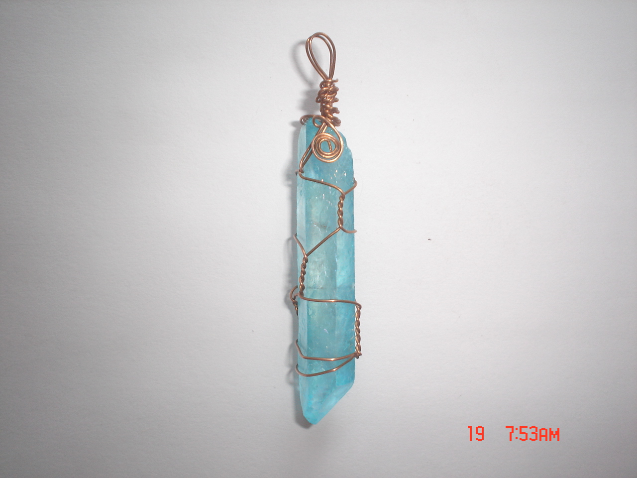 Aqua Aura Quartz Wire Wrapped Pendant (F312)