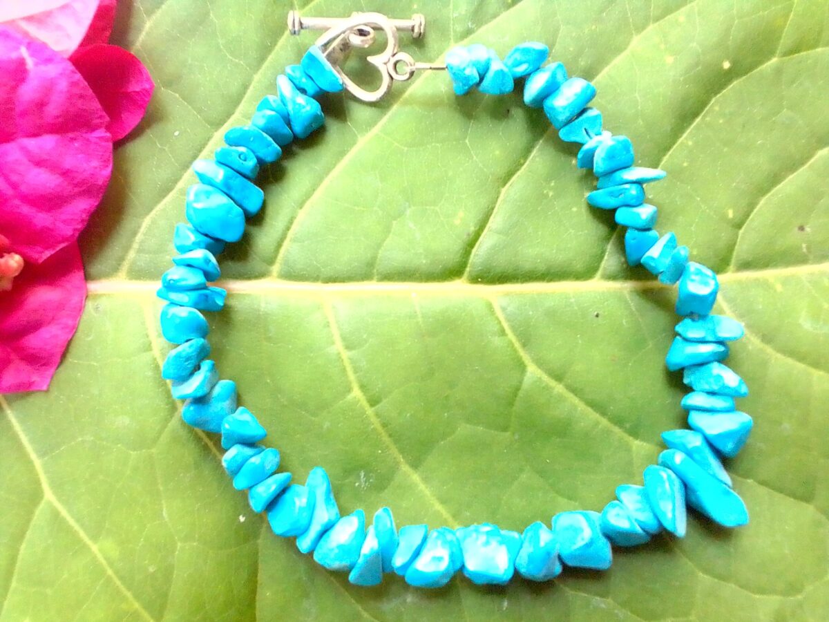Blue Howlite Chip Stone Bracelet – Calming, Communication & Balance. Colored blue, may be light or darker blue.
