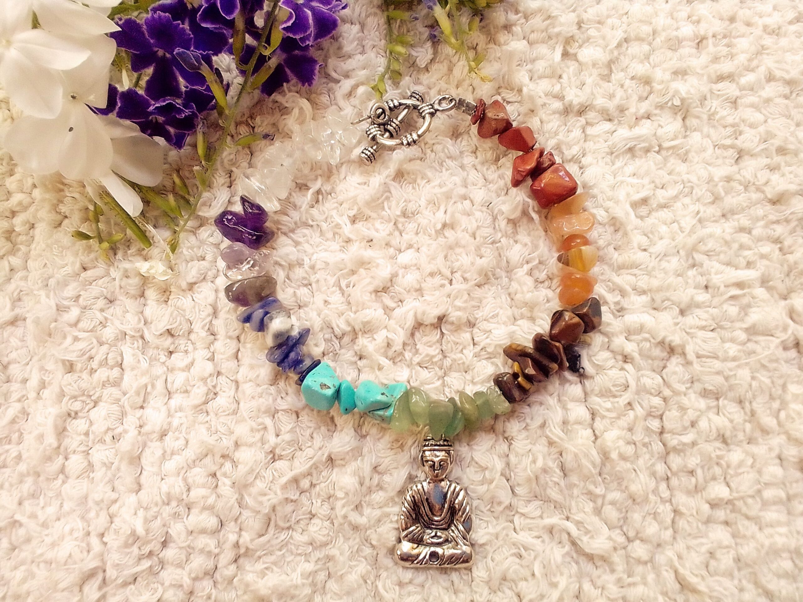 Chakra Chip Stone Bracelet with Buddha