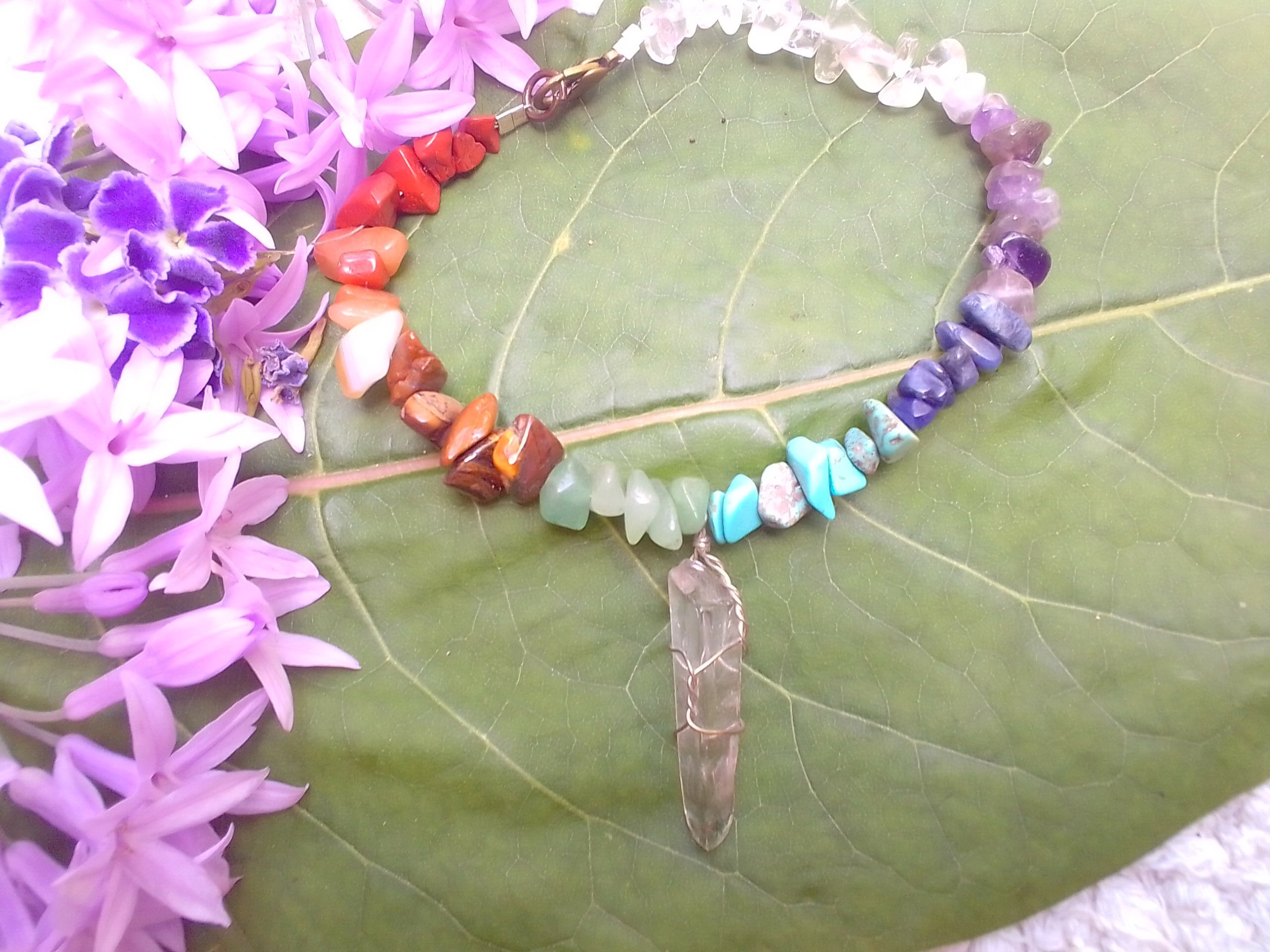Chakra Chip Stone Bracelet with Clear Quartz Point