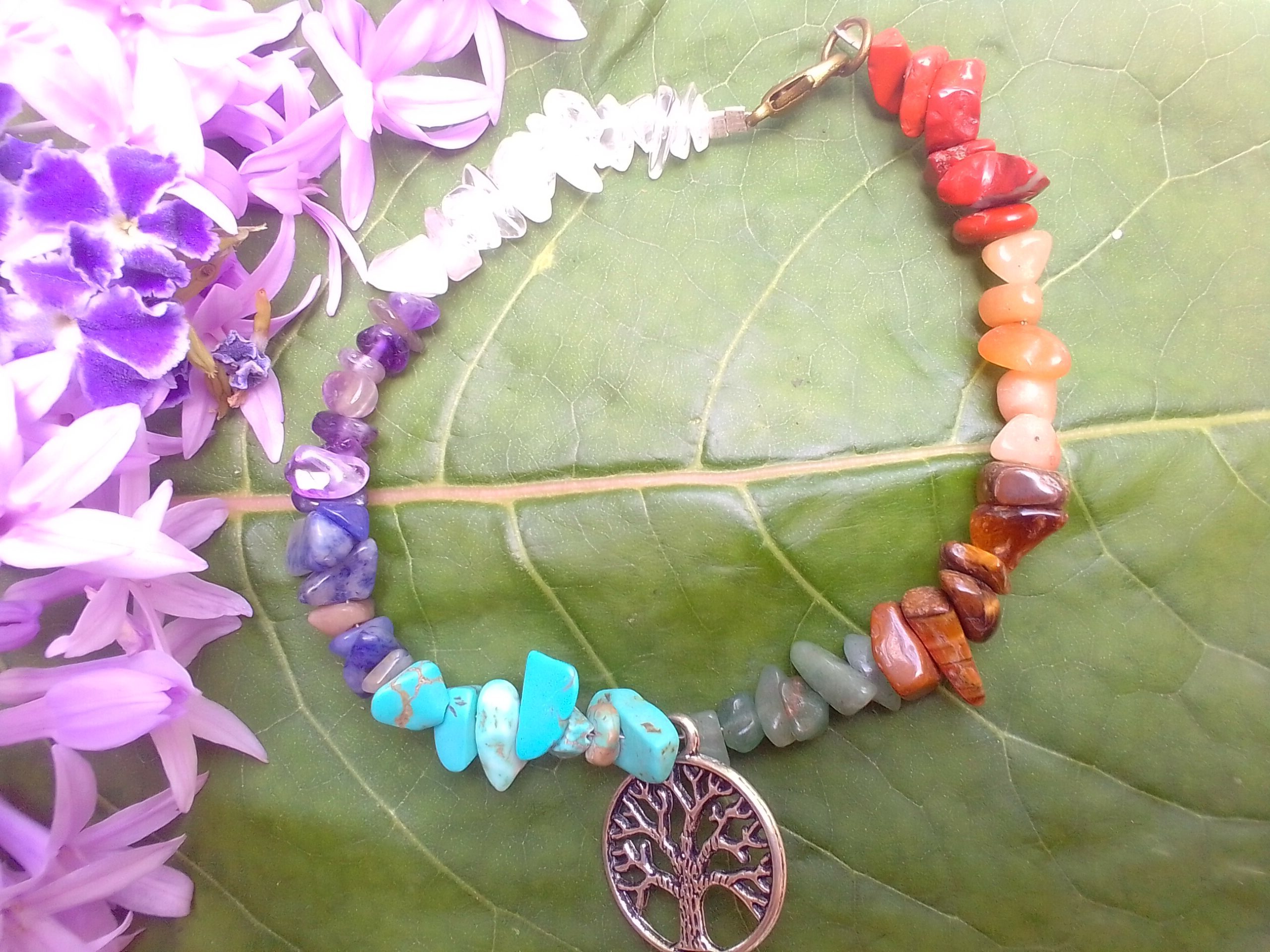 Experience spiritual alignment, grounding, and cosmic connection with the Chakra Chip Stone Bracelet with Tree of Life—a meaningful accessory for your journey of self-discovery and balance.