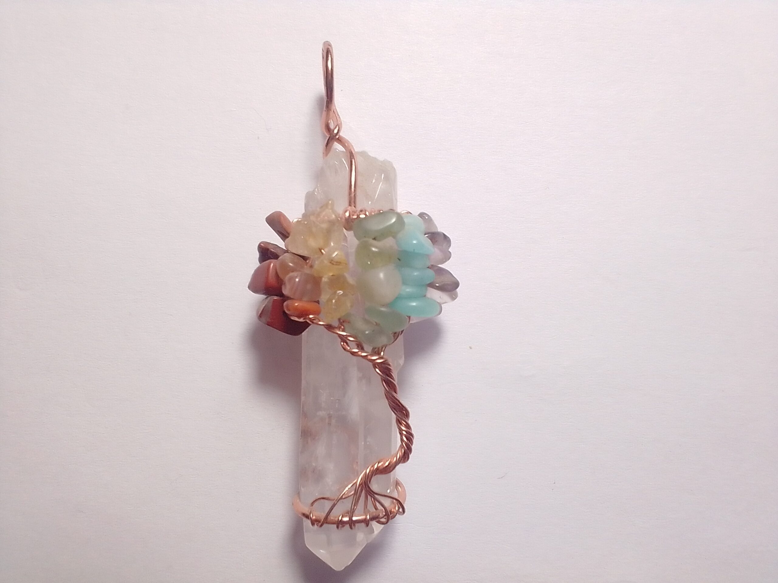 Clear Quartz & Chakra Wire Wrapped Gemtree Pendant