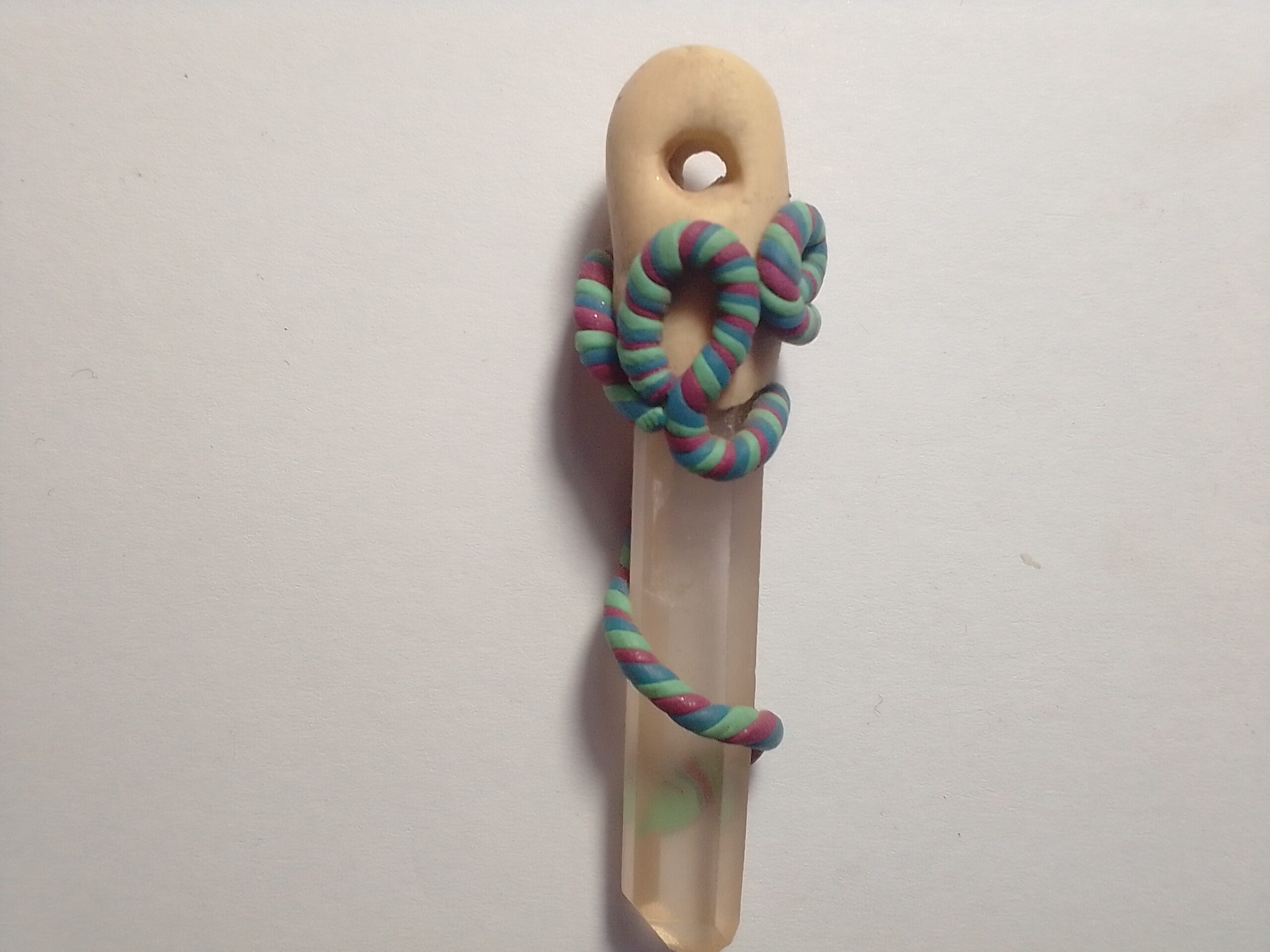 Clear Quartz works on all areas of the mind and body, awakening, amplifying and transmitting energy and clarifying thought processes. It unlocks memory, stimulates brain function, aids wisdom and vision. It is an excellent stone for meditation, directing energies with more intensity. It connects to the higher self, removes negativity and allows access to your spirit guides. Allows the energy of the stars into the soul. Clear Quartz Fimo Pendant provides clarity in thinking and awareness. This stone also enhances the actions of all other crystals. Think of clear quartz as a magnifying glass. It magnifies the effect of healing and the properties of other crystals. Quartz a very effective prayer generator. Whisper your prayer to the stone in the morning and leave it to focus and transmit the energy of your prayer to the divine. The stone will keep working long after your everyday routine has driven the prayer from your conscious mind. Crystal Quartz exhibits the property of piezoelectricity, by which it can transform mechanical energy (eg pressure) into electromagnetic energy and vice versa.