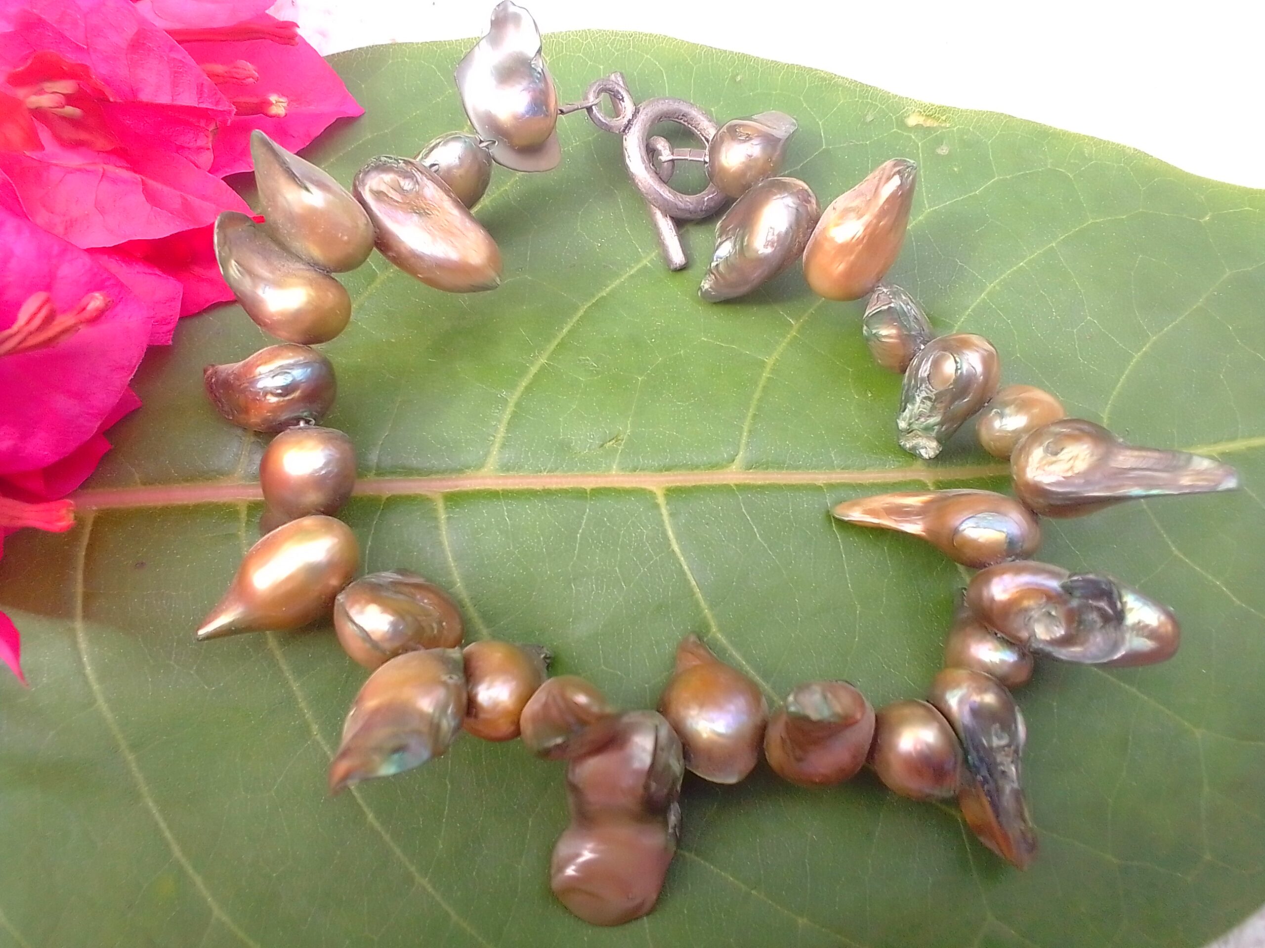 Freshwater Pearl Bead Bracelet – Green & Gold Hues
