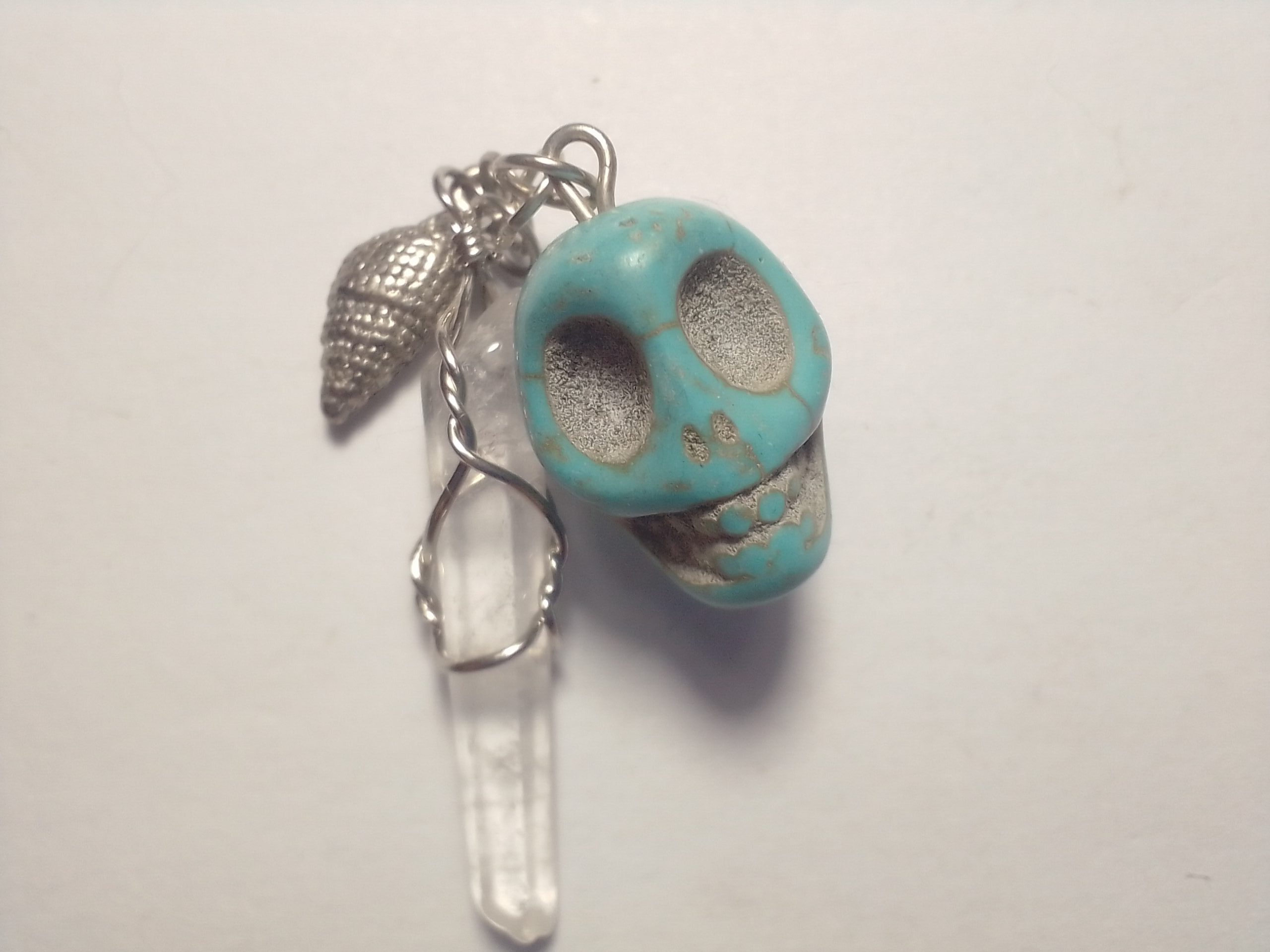 Howlite Blue Scull & Clear Quartz Point Pendant