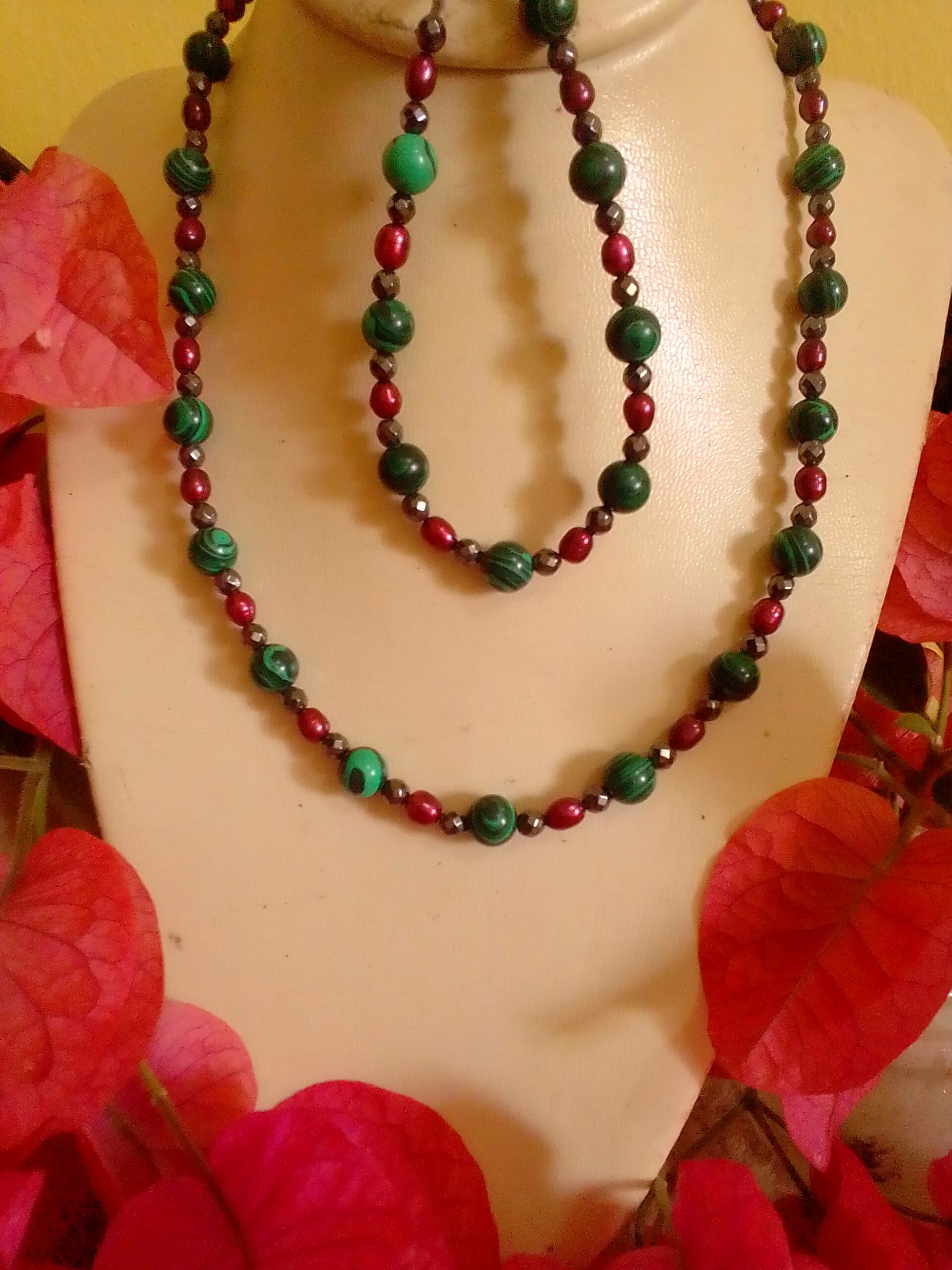 Buy your Malachite, Hematite Freshwater Pearl Necklace Set today