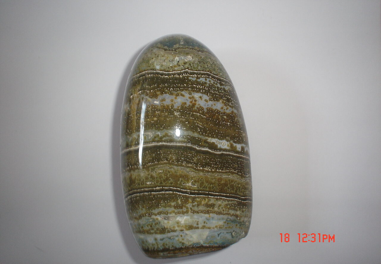 A polished Ocean Jasper is particularly conducive for meditation, and is greatly enhanced by soft silver candlelight or moonlight.  Use Ocean Jasper as a talisman of patience, for oneself as well as for others. It enkindles a gentle and gradual release of pent-up anger and clears emotional blockages.  Orbicular Jaspers are “taking care of business stones” and encourage one to view each circular mark as a sign of a project or detail that needs to be addressed. They aid in the acceptance of responsibility and are particularly supportive of pursuits based on service to others.