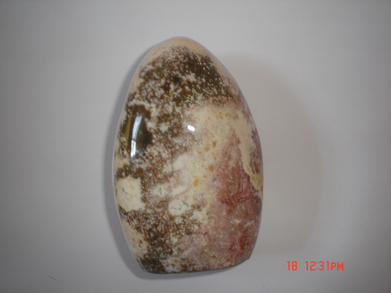 Ocean Jasper, also known as Atlantis stone, orbicular jasper, sea jasper, cellular jasper. Found in the coast of Madagascar. Ocean Jasper draws its soothing power from the element of Water. It is a stone of strength and renewal with a slow, steady frequency and a deep circular energy that embodies the inter-connectedness of all things. Its spherical patterns are a spiritual reminder of how thoughts, words and actions interact in our world and flow in a circular direction. It honors the principle that what one sends out will indeed return.