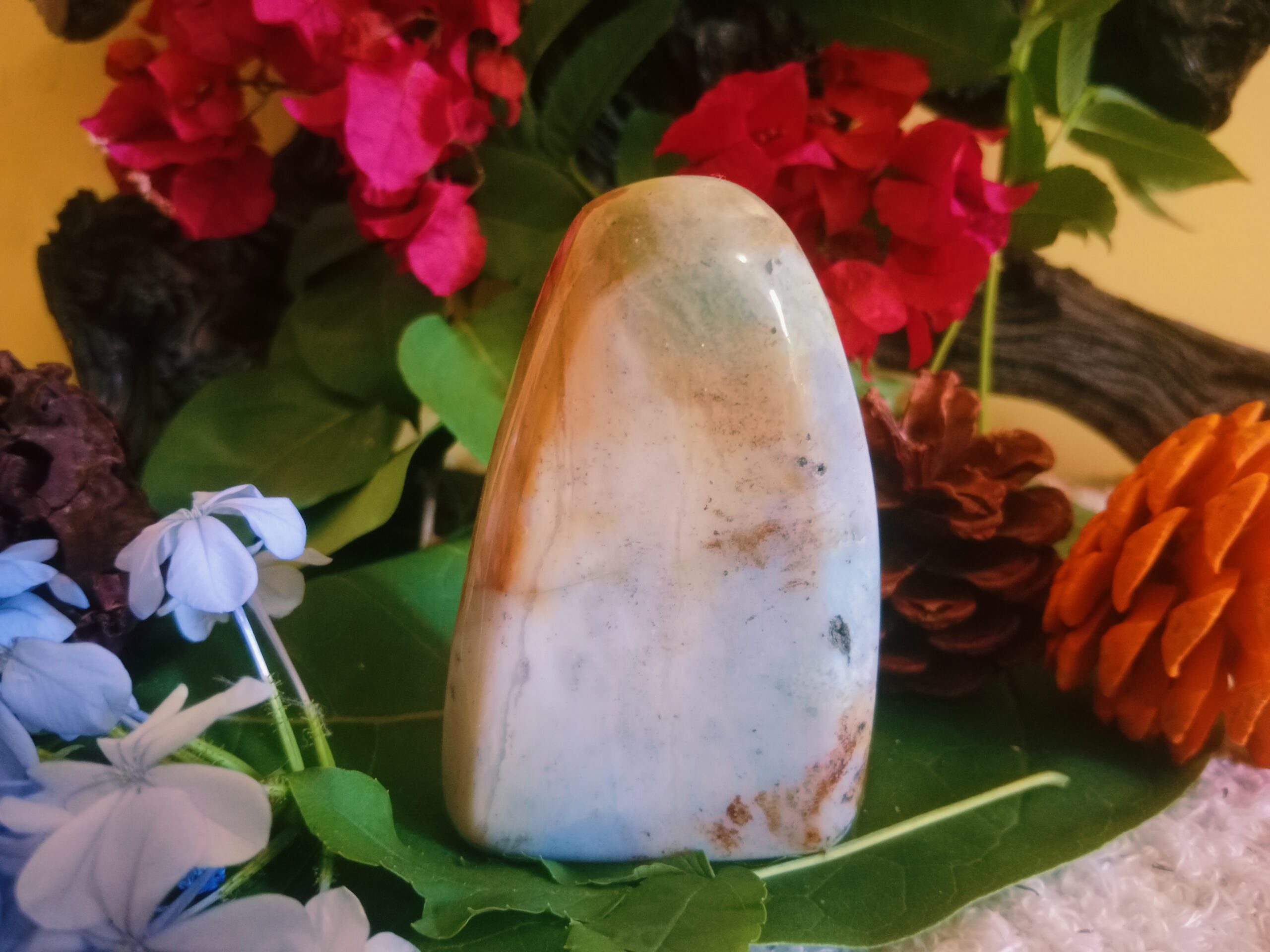 Like all Jaspers, Ocean Jasper alleviates stress and induces tranquility. Its cleansing effect eliminates negative energy and stabilizes the aura. It makes an ideal worry or rubbing stone for soothing the nerves and increasing one’s focus and is a wonderful stone for banishing nightmares or harmful thoughts.