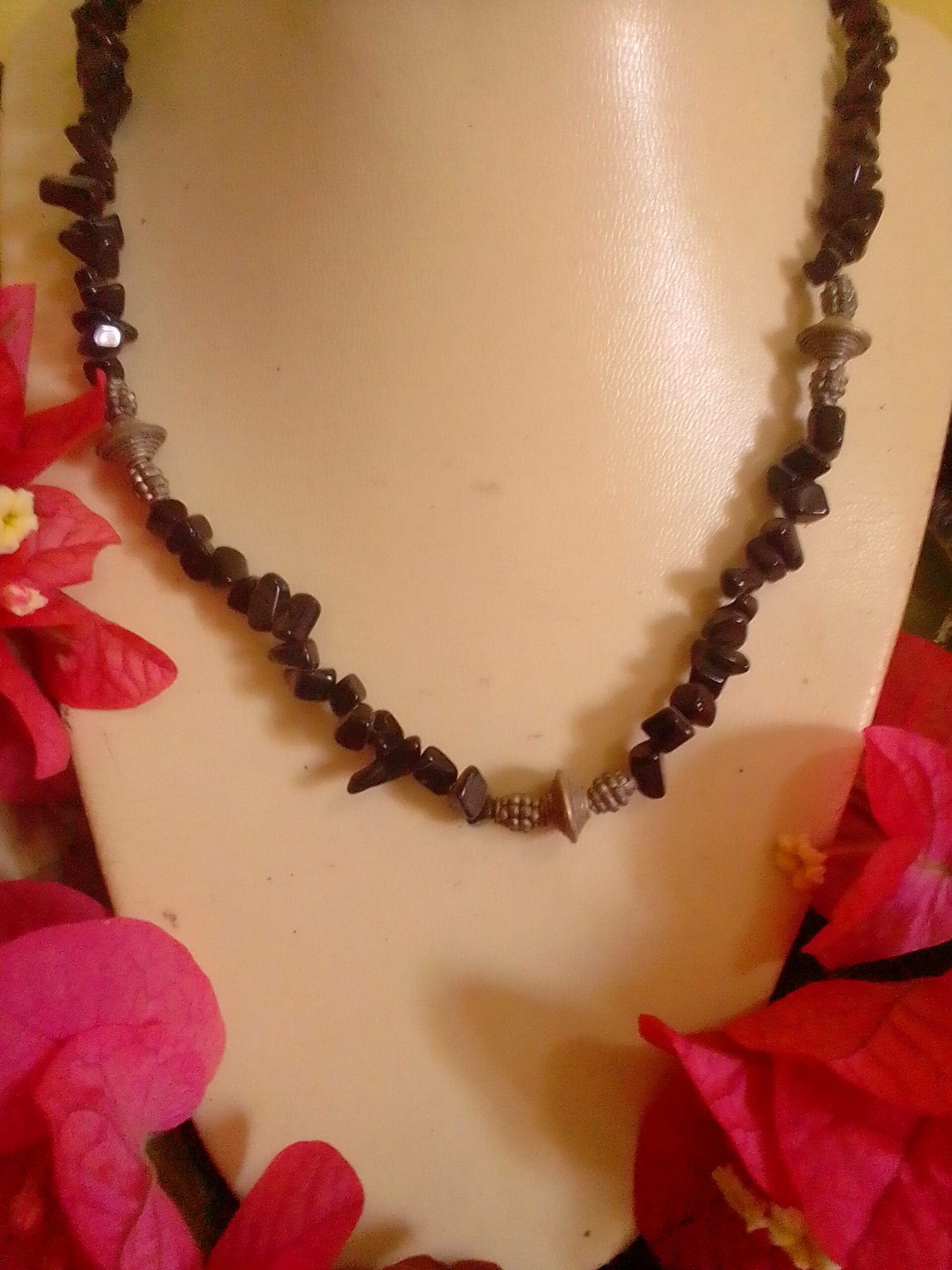 Use in animals: Bowels, Parasites, Protection- A great stone for outdoor pets, because it is known to draw out negative energies and entities, which can be helpful for things like fleas and parasites. As such, it is good for the bowels. A very protective stone, Onyx Chip Necklace is supportive of physical strength and stamina, and can be helpful during times of stress, such as physical illness, trauma, or even during fights with other animals. Also assists with grounding energy. Benefits teeth, bones and blood disorders.