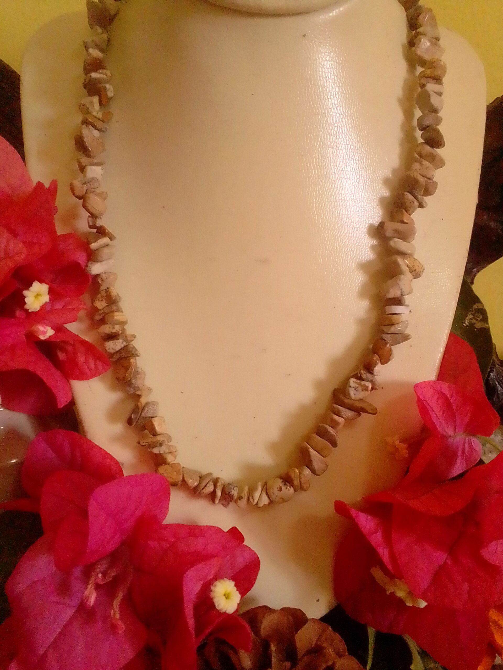Picture Jasper Chip Necklace aid protection, for the physical and spiritual realm. Known as the “rain bringers” and nurturers. Healer of spirit and stone of courage and wisdom. Excellent focus for meditation, especially when undertaking spirit journeys to gain understanding of American Indian, Egyptian or Sumerian magic and spirituality.