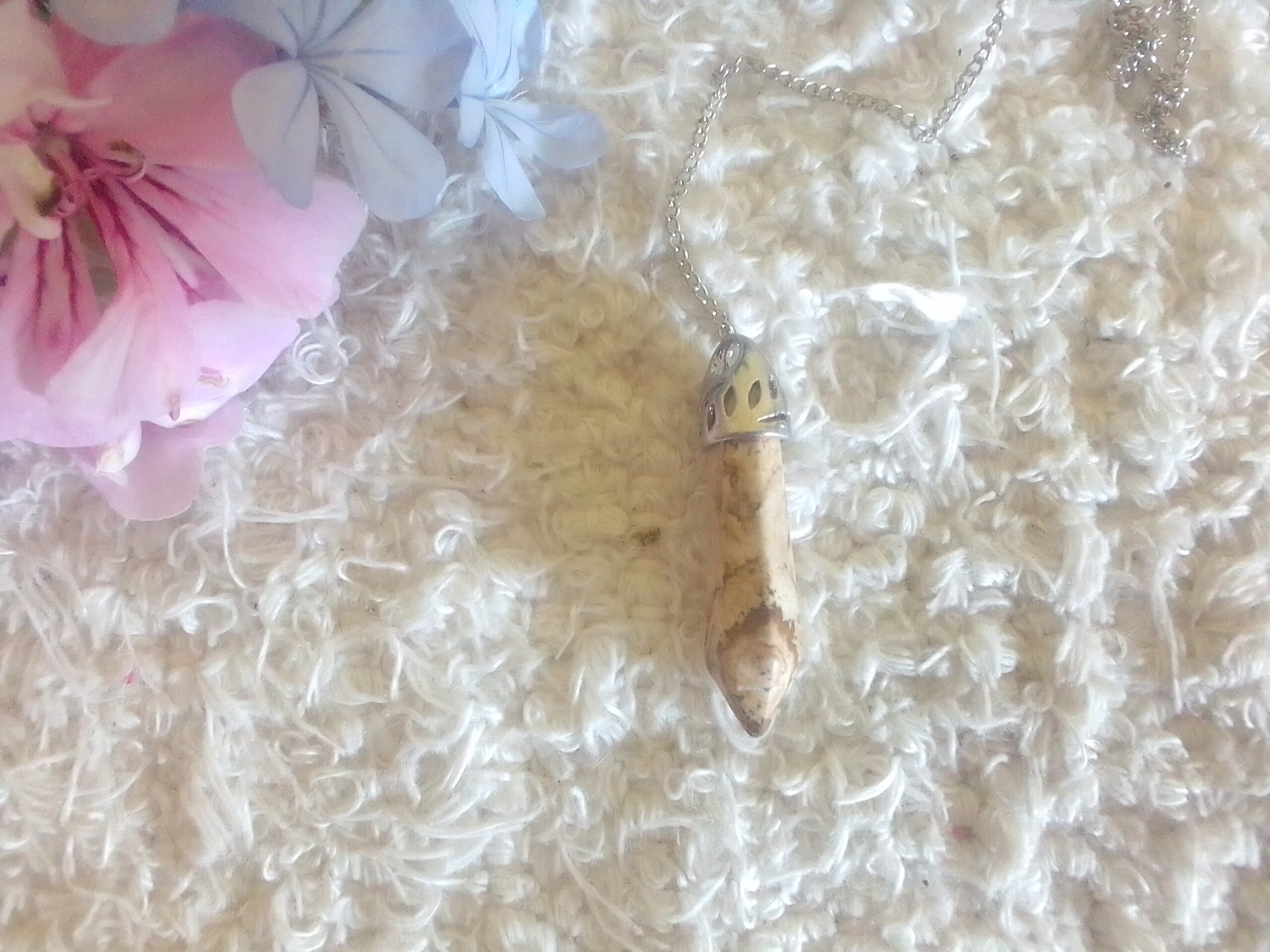 Picture Jasper Point Pendulum is renowned for its earthy hues and scenic patterns that resemble landscapes. Evoking a deep connection to nature and grounding energies. Known as a “stone of global awareness.” Picture Jasper is valued for its ability to instill calmness, stability, and a strong connection to the earth. Promote a sense of wholeness, encouraging the release of suppressed emotions and offering insight into past challenges. This Jasper’s grounding qualities make this pendulum an ideal companion for spiritual work that require emotional resilience and stability.
