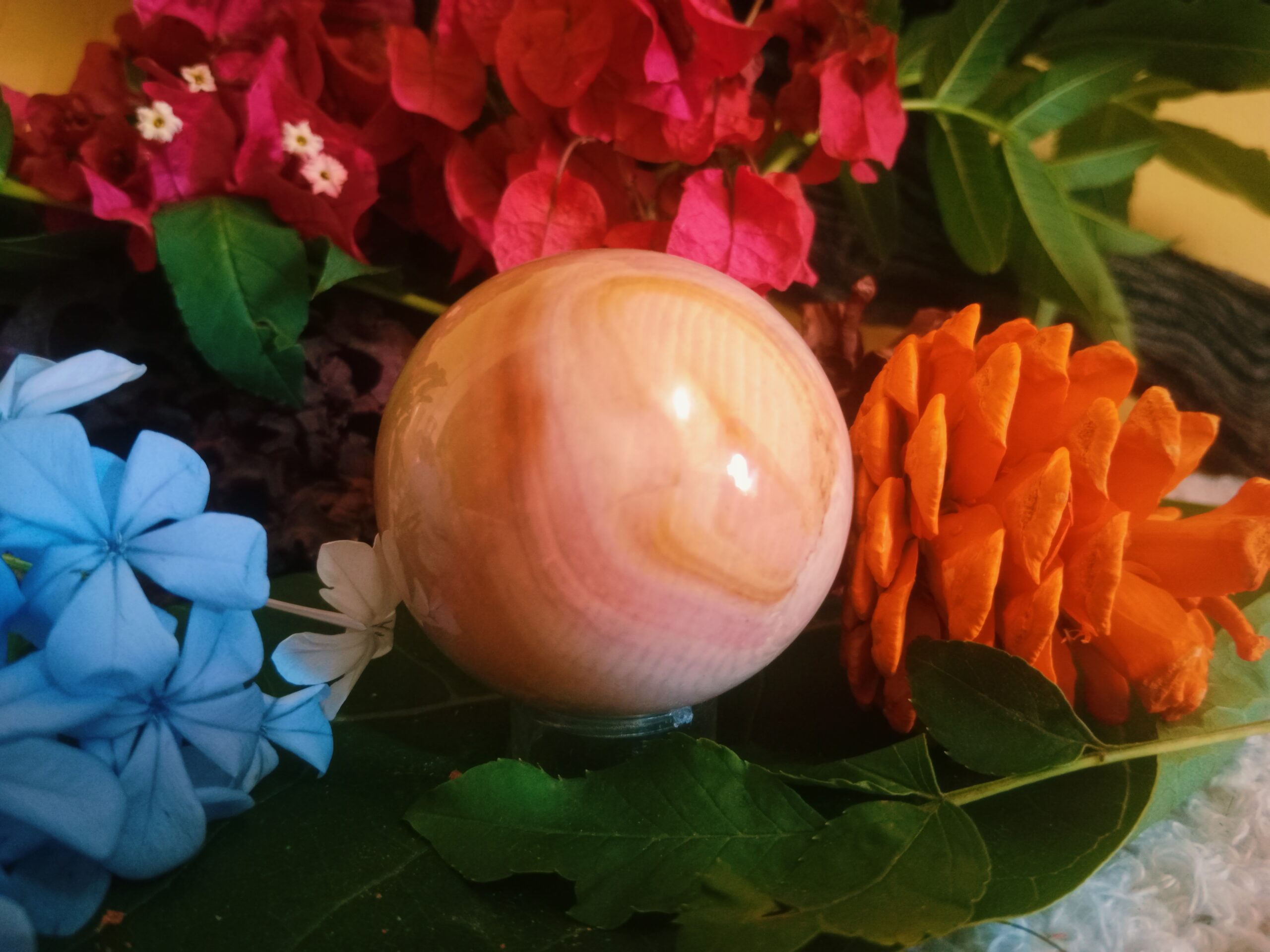 The polychrome jasper also known as the desert jasper, is a healing stone that signifies being true to yourself, embracing life enthusiastically, honoring limitations, as well as a fiery energy, which facilitates action and courage. Polychrome Jasper Stone Ball (SSP296) stone also known as the Royal Savannah jasper.
