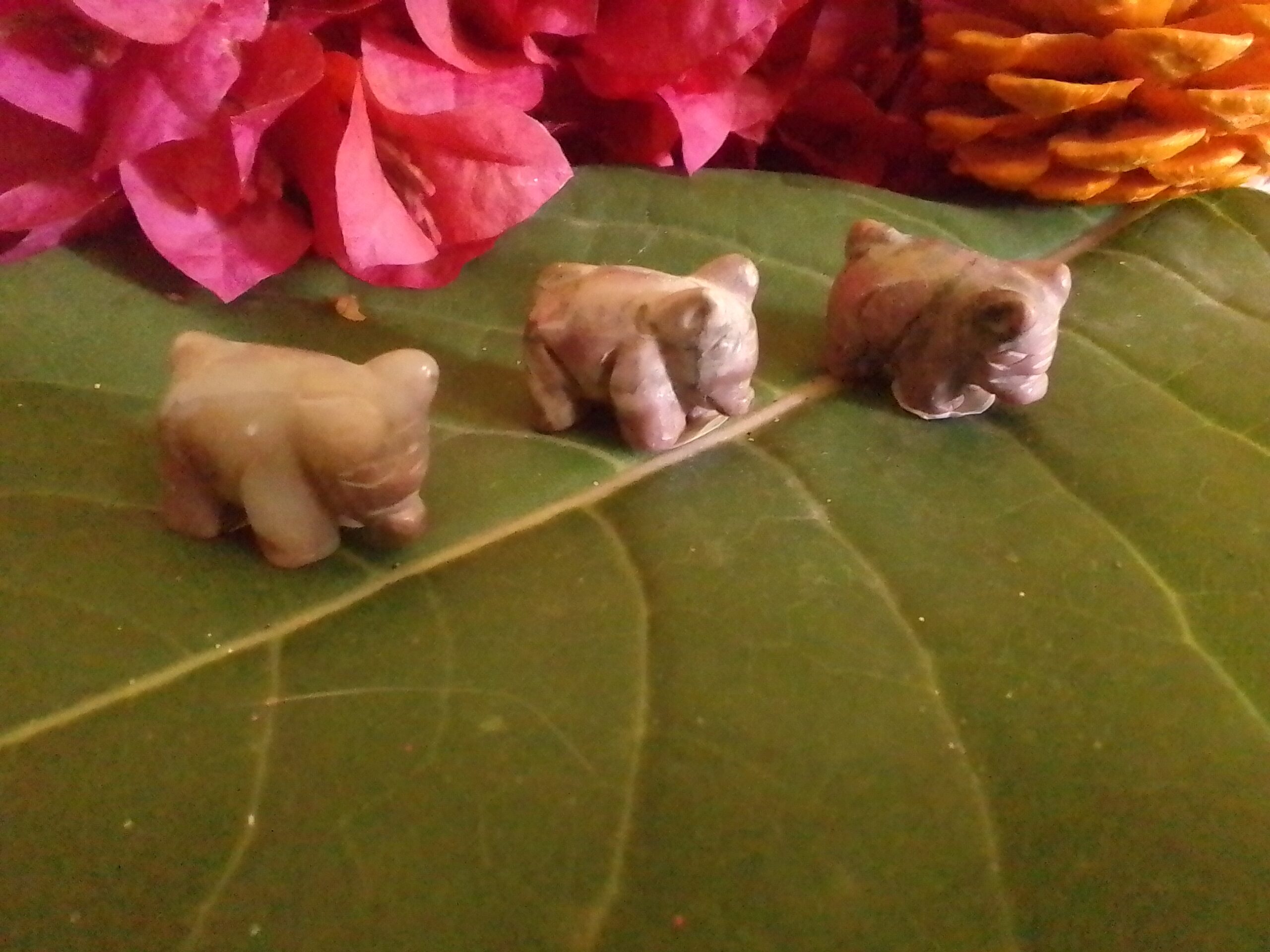 Rhodonite in Quartz Carved Stone Bear