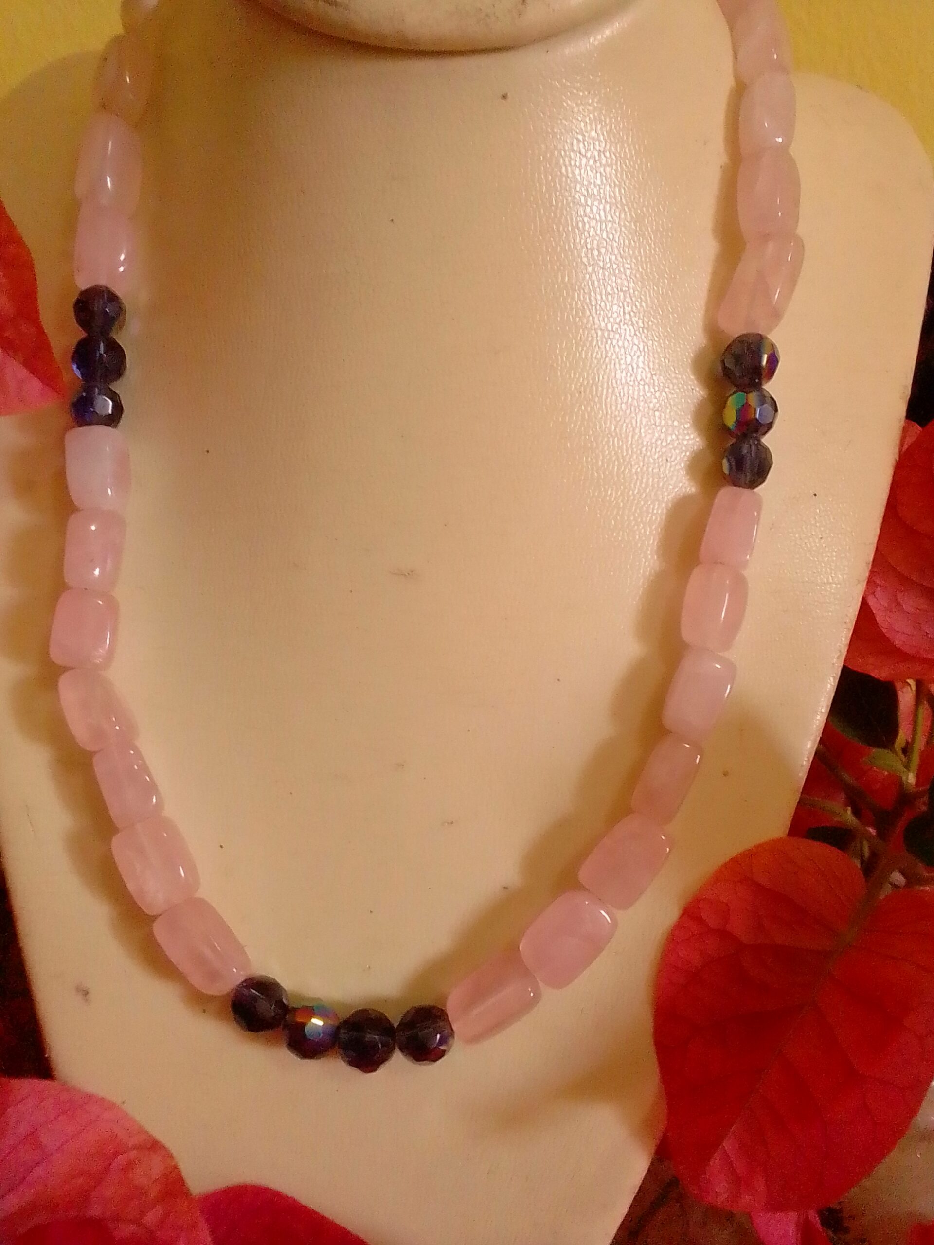 Rose quartz bead necklace promote unconditional love, forgiveness, infinite peace, and compassion. Harmony, relationships and fertility. In conclusion purify and open up the heart to allow us to express our emotion. Reduce stress and tension. Love, sensitivity and compassion.