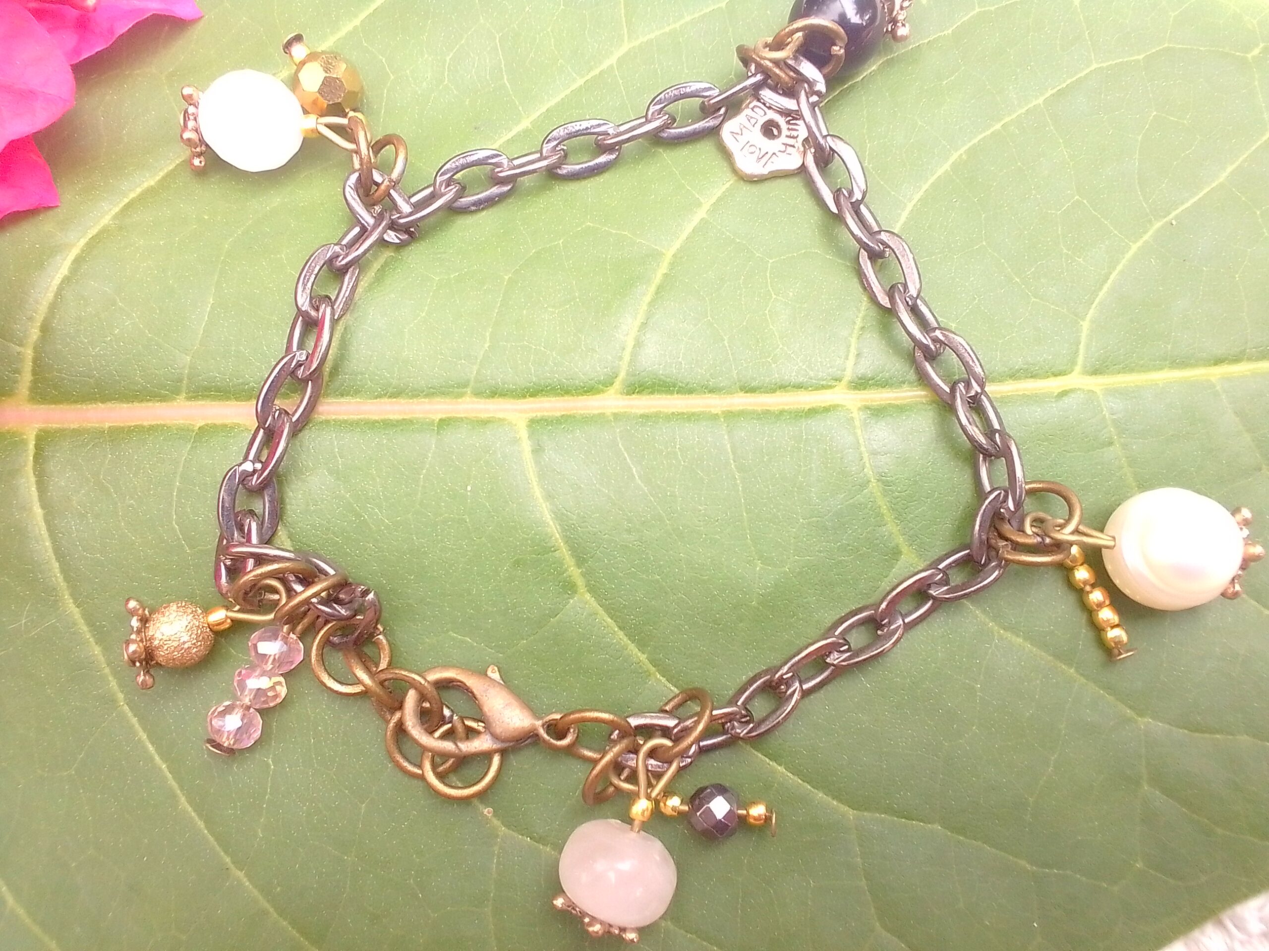 Rose quartz & Onyx & Freshwater Pearl Bracelet