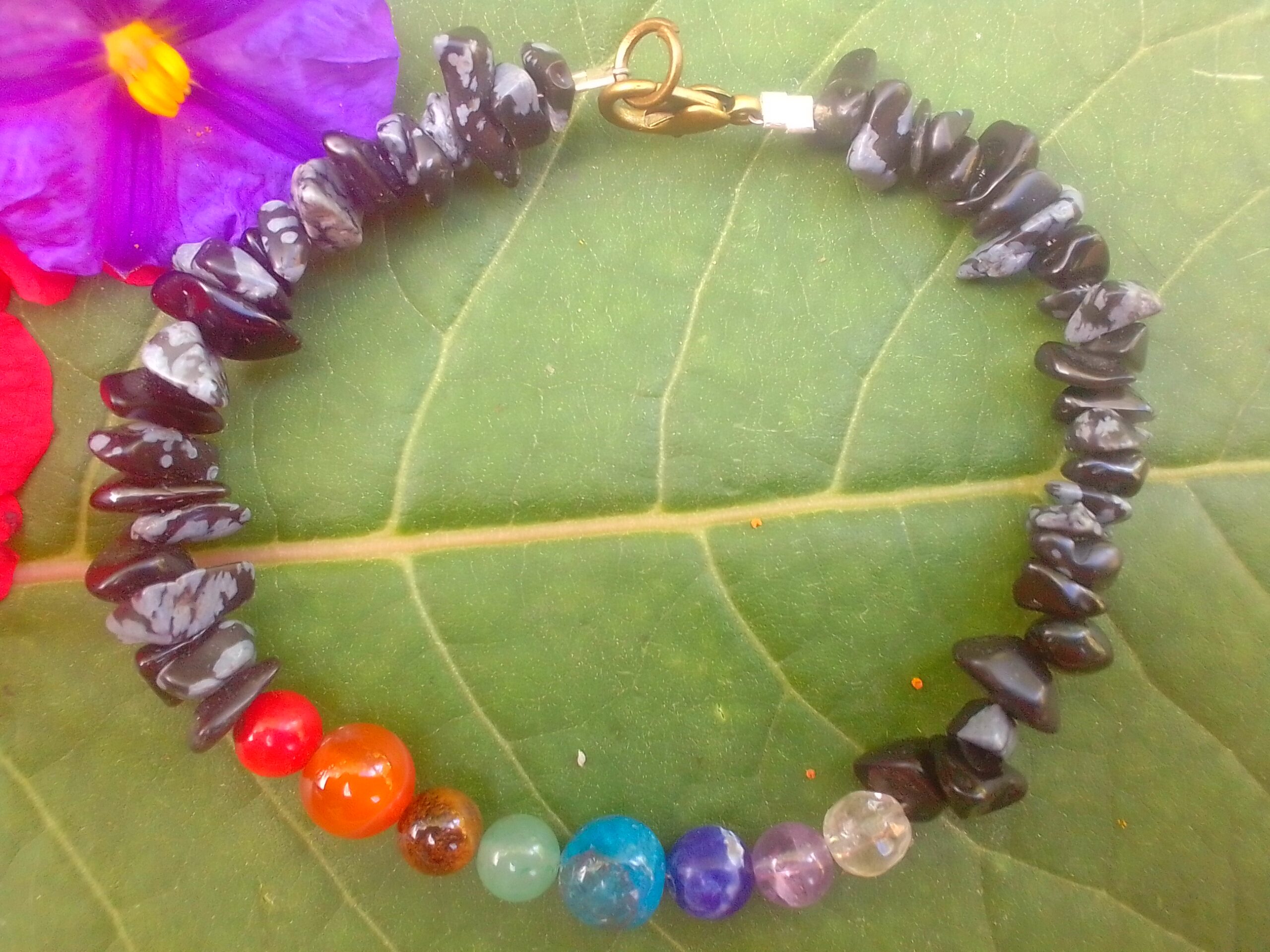 Snowflake Obsidian Chakra Bracelet – Balance, Protection, and Inner Clarity