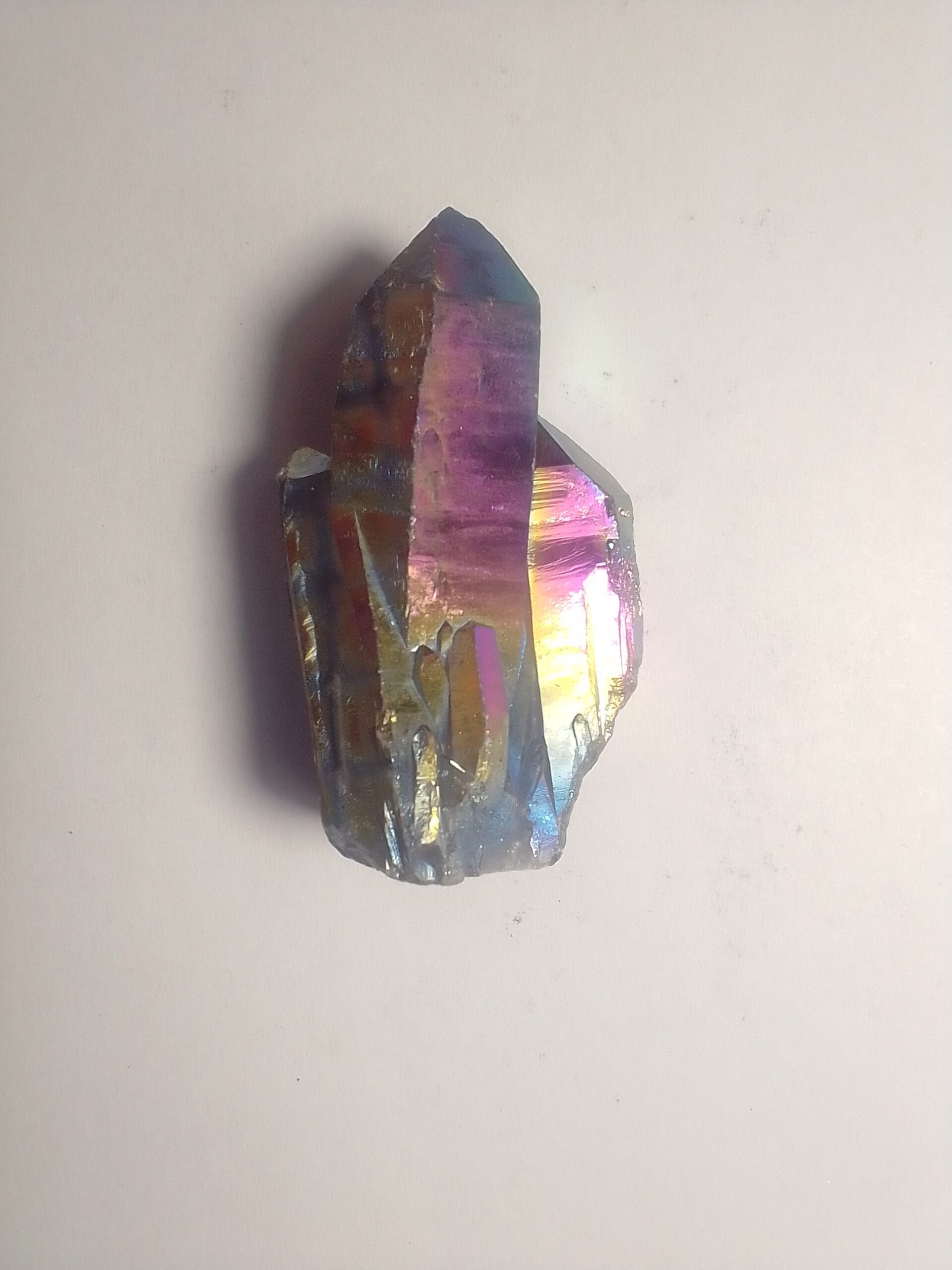 Titanium Aura Quartz Rough Stone (2-3cm) crystals are extraordinary stones for healing crystal grids. Activating the Light body and grounding it in the physical body. Laid along the chakras like a rainbow, the various colors raise the vibrational rate of the chakras to accommodate expanded consciousness. They align and purify the entire system, allowing for “Rainbow Light Body” activation and integration.