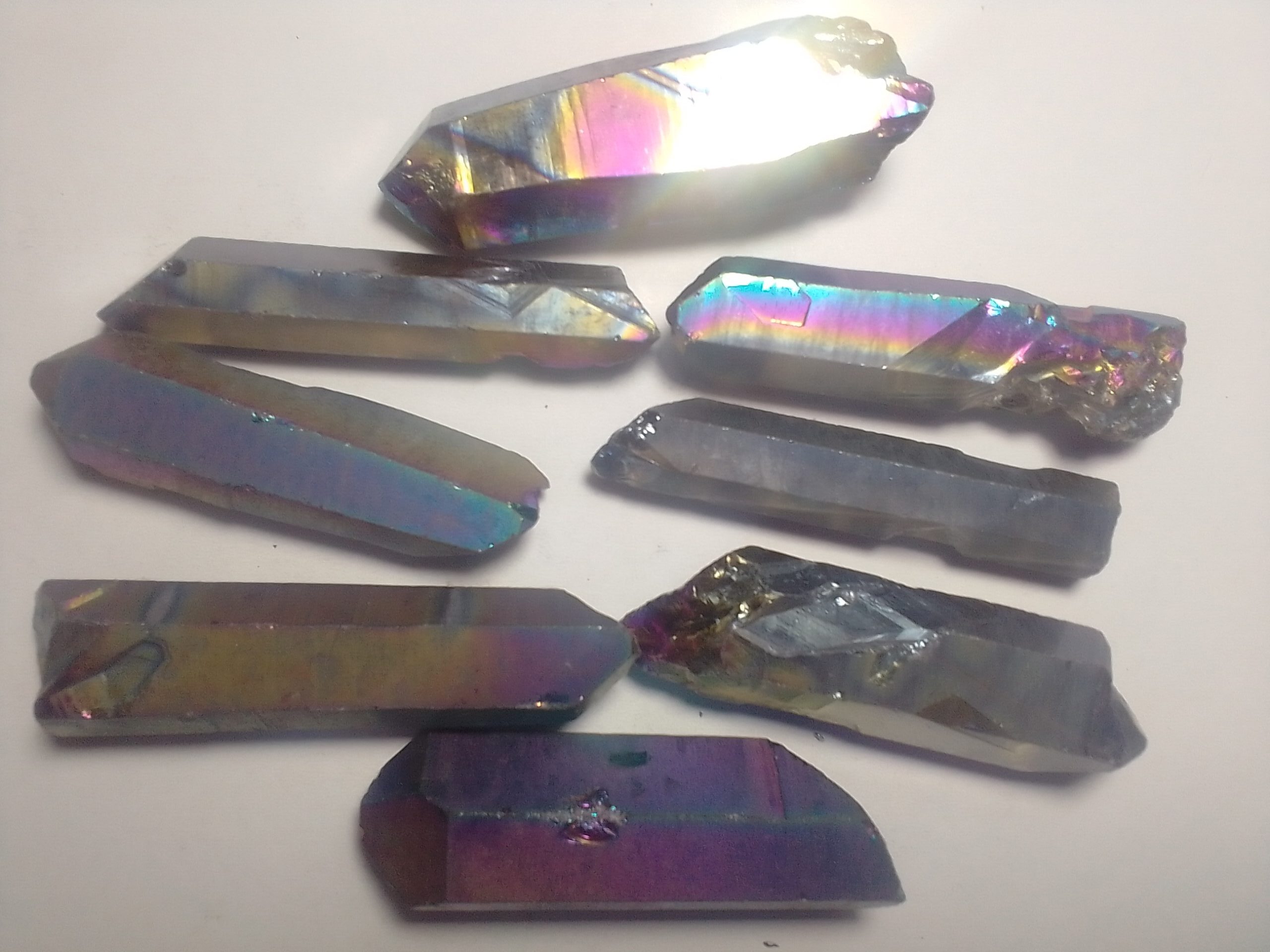 Titanium Aura Quartz Rough Stone (2-3cm) crystals are extraordinary stones for healing crystal grids. Activating the Light body and grounding it in the physical body. Laid along the chakras like a rainbow, the various colors raise the vibrational rate of the chakras to accommodate expanded consciousness. They align and purify the entire system, allowing for “Rainbow Light Body” activation and integration.
