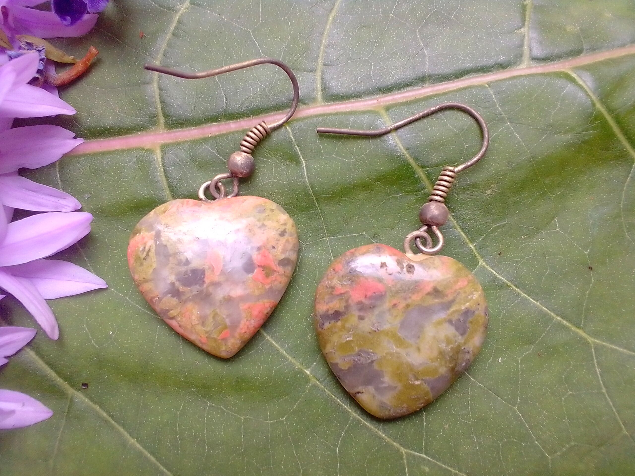 Unakite Heart Earrings – Balance, Healing & Spiritual Growth