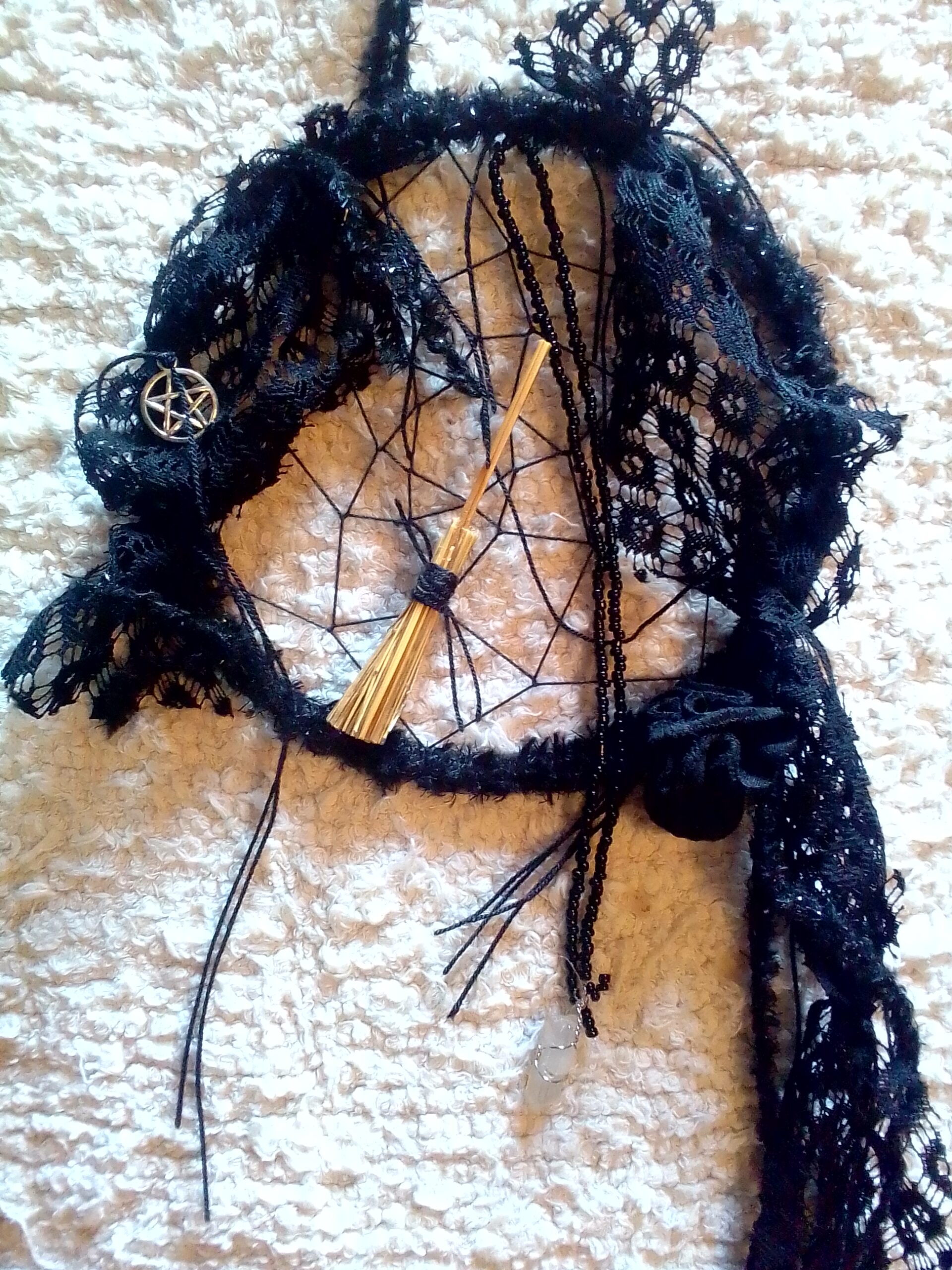 Perfect for hanging near your bed, windows, or entryways, this dreamcatcher acts as both a protective charm and a striking accent. Ideal for the modern witch, spiritual seekers, or anyone looking to cultivate a space of calm and security, the Protective Dreamcatcher combines elegance with powerful symbolism for true protection and peace.