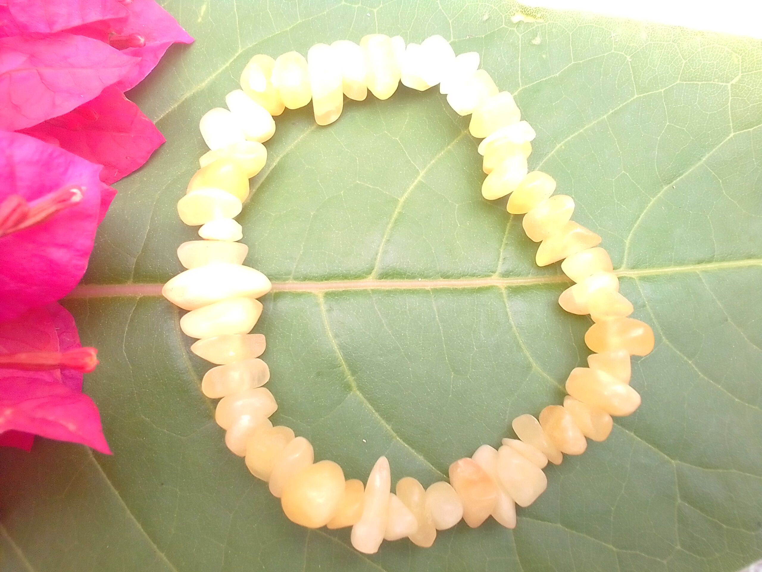 Yellow Calcite Chip Stone Bracelet is a form of calcium carbonate that comes in bright yellow hues. And is known for its soft, radiant energy. It is a popular stone in both healing and magical practices.
